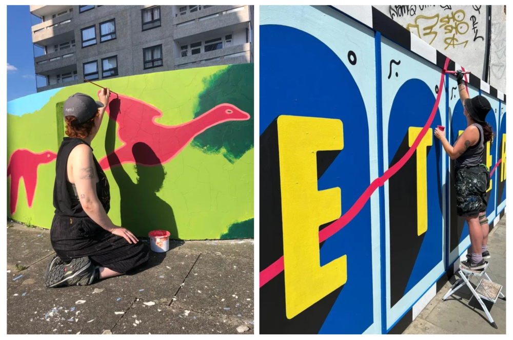 Daisy and Ellen from WET PAINT WALLS are artists based in Deptford. They have a special connection to the Love Over Gold mural - Ruth Preistley, one of the two original Love Over Gold artists, was Daisy’s mum. Watch the film about their connection!
